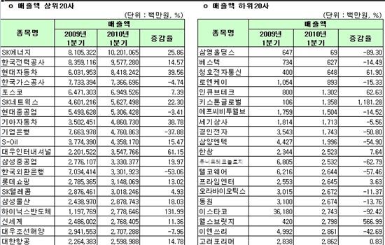 [1Q실적]12월결산 코스피 기업 매출액 상·하위 20개사