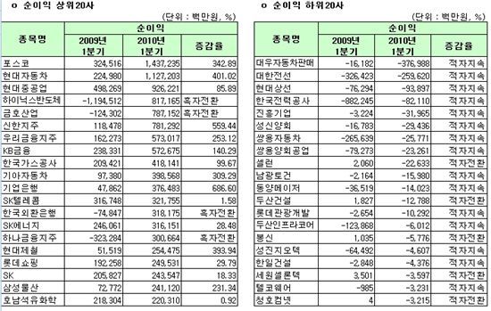[1Q실적]12월결산 코스피 기업 순익 상·하위 20개사