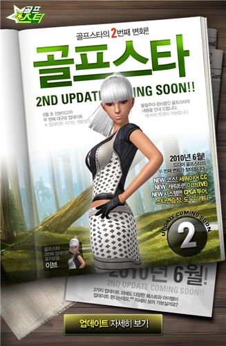[아시아경제 김철현 기자]컴투스(대표 박지영)는 온라인 골프게임 '골프스타'에서 대규모 업데이트를 실시한다고 19일 밝혔다.컴투스에 따르면 '골프스타'는 오는 6월 초 신규 코스와 캐릭터, CPGA 투어 및 도우미 캐디 등을 추가하는 대규모 업데이트를 실시할 예정이다. 이번 업데이트에는 신규 코스 '세쿼이어 C.C'와 새로운 캐릭터 '이브' 등이 포함돼 있다. 특히 이번 업데이트를 통해 추가되는 'CPGA 투어'는 주기적으로 아마추어 이상의 회원(CPGA)이 참여할 수 있는 대회 프로그램으로, 실제 골프 경기와 유사한 플레이를 할 수 있다는 점에서 사용자들의 관심이 집중되고 있다.또한 '골프스타'는 사용자들의 원활한 플레이를 돕는 시스템도 새롭게 추가할 계획이다. 플레이 상황에 맞는 연습과 트레이닝이 가능하도록 구성된 '스타연습장'은 기존의 '샷 연습장'에서 한 단계 업그레이드 돼 다양한 스킬을 익히는 데 도움을 줄 것이라고 컴투스 측은 설명했다.플레이에 대한 조언과 팁을 통해 사용자들이 보다 쉽게 게임을 접할 수 있도록 '도우미캐디' 시스템도 함께 공개된다. '골프스타'의 대규모 업데이트에 대한 보다 자세한 내용은 공식 홈페이지()에서 확인 할 수 있다.김철현 기자 kch@<ⓒ세계를 보는 창 경제를 보는 눈, 아시아경제(www.asiae.co.kr) 무단전재 배포금지>