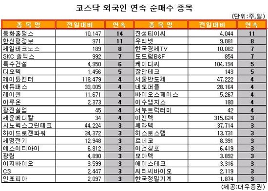 [표] 외국인, 케이디씨 5거래일 연속 순매수