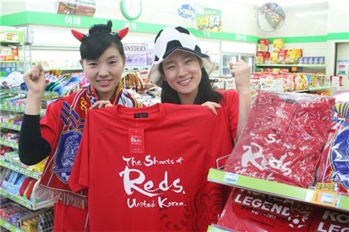 [아시아경제 최대열 기자]편의점업체 보광훼미리마트는 월드컵을 기념해 붉은악마 공식티셔츠를 업계 단독으로 판매한다고 24일 밝혔다.이 티셔츠는 기존까지 국내서 유일하게 국제축구연맹(FIFA) 공식매장으로 선정된 홈플러스에서만 판매되던 것으로 앞부분에는 'The Shouts of Reds United Korea(승리의 함성, 하나된 한국)'라는 슬로건이 적혀 있다. 가격은 1만4900원으로 양사 모두 같다.한편 훼미리마트는 이번 티셔츠 판매를 기념해 월드컵이 열리는 다음 달 30일까지 다양한 행사를 진행한다. 구매고객에게 프링글스를 증정하고 3장 이상 구매시 최고 15%까지 할인받을 수 있는 혜택을 제공한다. 집에 있는 붉은 티셔츠를 가져오면 3000원 할인해주는 행사도 같이 진행한다.최대열 기자 dychoi@<ⓒ세계를 보는 창 경제를 보는 눈, 아시아경제(www.asiae.co.kr) 무단전재 배포금지>