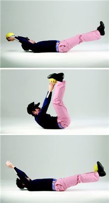 이번 주에는 복근운동이다.복근은 모든 운동에 있어서 가장 기초적인 근력이다. 대다수 운동선수들이 하나같이 단단한 배, 이른바 '식스팩'을 가지고 있는 건 그만큼 중요하다는 뜻이다.식스팩은 물론 '남성미'의 상징이라고 할 만큼 보기에도 멋지다. 바로 이 식스팩을 만들 수 있는, 볼을 이용해서 집 안에서 간단하게 할 수 있는 복근운동이 있다.먼저 <사진 위>처럼 양팔에 볼을 들고 바닥에 눕는다. 이때 머리와 다리는 지면에 닿지 않은 상태다. 다음에 <사진 가운데>처럼 상체와 하체를 들어 올리면서 손에 있는 볼을 양발 사이에 끼운 후 <사진 아래>와 같이 다시 눕는다. 이후에는 똑같은 동작을 반복하면서 발에 있는 볼을 손으로, 다시 발로 옮긴다. 하루에 15회씩 3세트가 적당하다. 처음부터 운동량을 100%로 가져가면 허리에 무리가 갈 수도 있다는 점을 기억해두자. 복근이 약하다면 횟수를 줄이고, 머리와 다리를 지면에 닿은 채 시작해도 된다.정리= 김현준 골프전문기자 golfkim@asiae.co.kr사진= 고성진(CㆍDircetion 스튜디오)<ⓒ세계를 보는 창 경제를 보는 눈, 아시아경제(www.asiae.co.kr) 무단전재 배포금지>