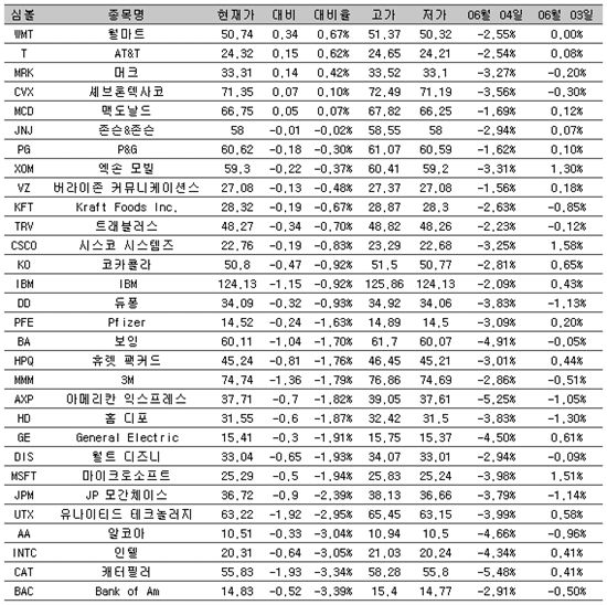[표] 美 다우지수 종목별 등락률