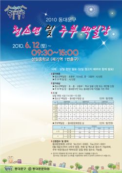 참가 부문은 시와 산문이며, 초· 중 ·고등학생, 동대문구와 관련된 주부(거주자 및 재직자)라면 누구나 참가할 수 있다. 시제는 당일 현장에서 발표하며, 부문별로 최우수 우수상 장려상 가작 입선 등을 시상한다. 청소년 최우수작에게는 각각 상금 10만 원이, 주부 최우수작에게는 상금 20만 원이 수여된다. ‘청소년’은 9일까지 동대문문화원 사무국으로 전화, 방문 접수하면 되고, ‘주부’는 당일 현장 접수도 가능하다. 참가자에게는 원고지와 필기구, 음료와 기념품이 제공된다. 참가자는 도시락을 지참하고 오전 9시 30분까지 성일중학교(제기역 1번 출구)에 도착하면 된다. 동대문문화원(☎2241-9300)박종일 기자 dream@<ⓒ세계를 보는 창 경제를 보는 눈, 아시아경제(www.asiae.co.kr) 무단전재 배포금지>