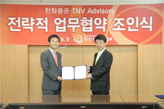 [아시아경제 김은별 기자]한화증권은 9일 여의도 본사 사옥에서 TNV Advisors와 금융투자상품 공급 및 판매에 대한 업무제휴 협약식을 체결했다.TNV Advisors는 지점 10곳을 둔 대형 독립금융판매사(GA, General Agency)로 금융·법률·세무·부동산전문가들이 관공서 및 기업 임직원등을 대상으로 재무설계컨설팅 서비스를 제공하는 자산관리회사다. 이번 업무제휴를 통해 한화증권은 양사 공동 사업과 금융인재 양성을 위한 교육 및 마케팅 등에 상호협력할 계획이다. 관계자는 "GA조직의 판매채널을 활용한 고객 접점 확대효과를 기대하고 있다"며 "신 판매채널을 지속적으로 확대, 강화해 나가기 위해 다른 GA조직과의 업무제휴를 지속해 나갈 예정"이라고 설명했다.김은별 기자 silverstar@<ⓒ세계를 보는 창 경제를 보는 눈, 아시아경제(www.asiae.co.kr) 무단전재 배포금지>