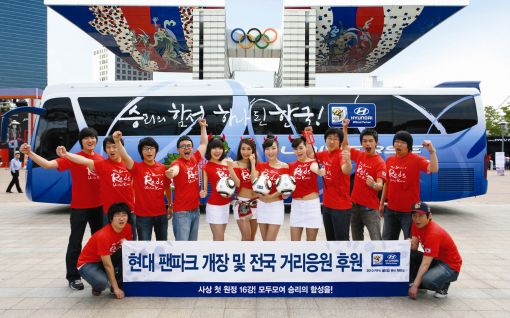 [아시아경제 박수익 기자] 현대자동차는 오는 11일 서울 송파구 올림픽공원 평화의 광장에서 남아공 월드컵 공식 거리응원장인 '현대 팬 파크'(HYUNDAI Fan Park) 개장식을 갖고, 본격적인 거리응원전에 나선다고 10일 밝혔다. ‘현대 팬 파크’는 국제축구연맹(FIFA) 공식 후원사인 현대차만의 독점적 글로벌 프로젝트로, 서울 올림픽공원 외에도 본선 진출국 등 총 19개국 32개 도시의 대표 광장 및 공원에서 상설 운영된다.현대차 측은 11일 열리는 '현대 팬 파크' 개장식에서는 남아공 월드컵 개막식과 개막전 경기를 현지 생중계하고, 빅뱅·애프터스쿨 등 인기가수와 다문화 가정 어린이로 구성된 레인보우 합창단이 승리기원 콘서트도 개최한다고 설명했다.또 월드컵 기간동안 ‘현대 팬 파크’에서는 본선 64개 전경기 중계와 단체응원전 운영은 물론 ▲주한 외국인 공연단이 펼치는 월드 뮤직 페스티벌 ▲다문화 가족 대상 음악회 및 팬 파크 투어 ▲테이블 사커, 슈팅 게임 등 다양한 행사들이 열릴 예정이다.한편 현대차는 ‘현대 팬 파크’ 외에도 전국 지방자치단체와 협력해 전국 140여개 주요 거점에서 대한민국 대표팀 경기의 거리응원전을 지원할 예정이다. 특히 서울 삼성동 코엑스부터 삼성역 사거리에 이르는 영동대로 거리응원전에서는 대한민국 축구 국가대표팀 공식 서포터즈인 붉은악마와 함께 공동 응원을 진행한다.현대차 관계자는 “현대 팬 파크는 한국전뿐만 아니라 월드컵 전 경기의 단체응원을 진행함으로써 월드컵 거리응원의 핵심 장소로 부각될 것”이라며 “주한 외국인을 비롯한 대한민국에 거주하는 모든 사람들이 함께 즐기는 글로벌 축제의 장이 될 것으로 기대한다"고 말했다.박수익 기자 sipark@<ⓒ세계를 보는 창 경제를 보는 눈, 아시아경제(www.asiae.co.kr) 무단전재 배포금지>