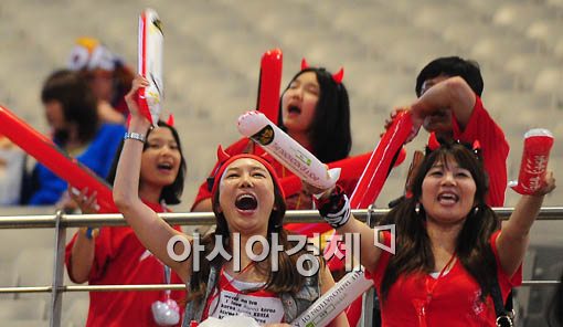 [아시아경제 윤동주 기자] 12일 오후 2010 남아공 월드컵 조별 예선 첫 경기 그리스전을 승리로 장식한 가운데 서울 상암동 월드컵 경기장에서 응원을 하던 시민들이 함성을 지르며 기쁨을 나누고 있다.윤동주 기자 doso7@<ⓒ세계를 보는 창 경제를 보는 눈, 아시아경제(www.asiae.co.kr) 무단전재 배포금지>