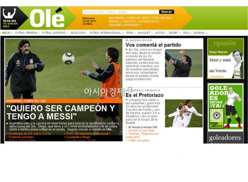 [아시아경제 강경록 기자] 아르헨티나의 대표적 일간지 올레는 16일자 1면에 '반칙의 한국'이라는 제목으로 한국을 폄하하는 악의적인 보도를 해 물의를 일으키고 있다.이 신문은 17일 한국과 아르헨티나의 조별예선 2차전을 앞두고 특정 한국 선수의 코멘트를 인용해 '반칙으로 아르헨티나 공격을 막겠다'고 전했다. 또한 마라도나 감독이 잔디밭에 무릎을 꿇고 두 손을 모으고 있는 사진 아래 "메시는 때리지 말길"이라는 제목과 함께 1986년 멕시코 월드컵 당시 '태권축구'일화를 다시한번 언급했다. 더불어 이 신문은 박주영이 "우리는 메시에게 지능적인 반칙을 해야 한다. 다른 선택이 없다"며 "메시가 일단 수비를 따돌리게 되면 너무 늦는다. 그가 공을 건드리기 전에 막아야 한다"고 말했다고 보도하기도 했다.한편, 이 신문은 "86년 멕시코에서 마라도나를 거의 다치게 했던 허 감독이 메시를 막을 열쇠를 잘 알고 있는 것"이라며 "벨기에 심판이 적절하게 반칙을 지적하길 바란다"고 덧붙이기도 했다. 강경록 기자 rock@<ⓒ아시아경제 & 스투닷컴(stoo.com)이 만드는 온오프라인 연예뉴스>