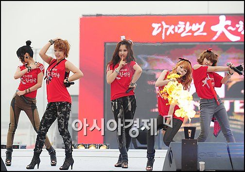 [아시아경제 박성기 기자]그룹 포미닛(4minute)이 17일 오후 6시 서울 한강 반포지구에서 남아공울드컵 한국 대 아르헨티나전을 앞두고 진행된 SBS 생방송 '다시한번 대~한민국' 공개방송에서 열정적인 모습을 선보이고 있다.
