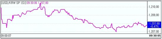 [아시아경제 정선영 기자]원·달러 환율이 점차 레벨을 낮추고 있다. 환율은 1200원을 눈앞에 두고 다소 속도조절을 하는 흐름을 나타내고 있다. 전일 스페인 국채발행 성공 소식과 EU가 은행권 스트레스테스트 지수 결과를 공개하기로 하면서 유로화는 1.2390달러대까지 반등세를 이어갔다. 조선업체의 수주 소식과 견조한 증시 흐름도 환율에 하락 압력을 주고 있다. 다만 1200원에 가까워서는 저점인식 결제수요 및 매수세도 나타나고 있어 환율이 하방 경직성을 보이고 있다. 18일 오전 9시9분 현재 서울외환시장에서 원·달러 환율은 전일대비 4.0원 내린 1209.5원에 거래되고 있다. 이날 환율은 1209.9원에 하락 개장한 후 이월 롱처분과 역외 매도로 아래쪽을 향했다. 한 시중은행 외환딜러는 "유로 상승 등의 영향으로 낮게 시작했지만 결제 및 네고물량의 움직임을 봐야 할 듯하다"며 "역외는 조심하는 분위기"라고 말했다. 그는 "최근 외국인 주식 순매수가 이어져온 만큼 환율이 1200원 근처까지 갈 수 있을 것"이라고 내다봤다. 또 다른 외환딜러는 "스페인 국채입찰이 조용히 마무리되고 유로가 올라서 전반적으로 환율 하향 압력이 있어 보인다"며 "아래쪽에서 당국 개입 경계감도 있고 주말을 앞두고 거래량이나 변동폭이 좀 줄어들 듯하다"고 내다봤다. 이날 코스피지수는 1.93포인트 오른 1709.85에 거래를 마쳤다. 외국인은 코스피에서 371억원 순매수하고 있다. 6월 만기 달러선물은 5.5원 하락한 1208.5원에 거래를 마쳤다. 등록외국인이 374계약, 은행이 610계약 순매수한 반면 증권은 3327계약 순매도하고 있다. 이날 오전 9시25분 현재 90.86엔으로 오르고 있고 원·엔 재정환율은 100엔당 1332.9원으로 내리고 있다. 유로달러는 1.2385달러로 오르고 있다. 정선영 기자 sigumi@<ⓒ세계를 보는 창 경제를 보는 눈, 아시아경제(www.asiae.co.kr) 무단전재 배포금지>정선영 기자 sigumi@<ⓒ아시아 대표 석간 '아시아경제' (www.newsva.co.kr) 무단전재 배포금지>
