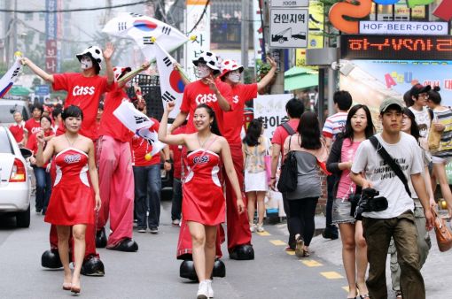 [아시아경제 이영규 기자]오비맥주(대표 이호림)는 대한민국과 아르헨티나전이 펼쳐진 17일 서울시내 강남역, 신촌, 홍대, 건대, 종로 등 5개 지역에서 대한민국의 승리를 기원하는 '길거리 응원 퍼레이드'를 펼쳤다. 이날 퍼레이드는 '짜릿한 오늘! 카스 마시며 응원하자'는 슬로건 아래 응원보이와 카스 응원걸, 바이크보더, 스핀 퍼포머 등으로 구성된 '카스 길거리 응원단'이 주도했다.카스는 23일까지 카스 생맥주 3잔 또는 카스 3병을 주문하는 고객을 대상으로 월드컵 응원도구 또는 응원수건(두건), 티셔츠 등을 증정하는 이벤트를 진행한다. 오비맥주 송현석 마케팅 상무는 "월드컵의 뜨거운 응원 열기에 카스의 '젊음의 에너지'를 더해 응원열기를 한층 더 북돋아주기 위하여 이번 이벤트를 마련했다"며 "열광적인 응원으로 젊음의 에너지를 한껏 발산할 이들의 분위기를 한층 북돋우는 데 필수 아이템이 될 것이다. 앞으로도 소비자들과 가까이에서 호흡할 수 있는 다양하고 차별화된 프로모션을 전개해 나갈 예정"이라고 밝혔다.이영규 기자 fortune@<ⓒ세계를 보는 창 경제를 보는 눈, 아시아경제(www.asiae.co.kr) 무단전재 배포금지>이영규 기자 fortune@<ⓒ아시아 대표 석간 '아시아경제' (www.newsva.co.kr) 무단전재 배포금지>