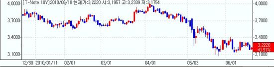 18일(현지시간) 뉴욕채권시장에서 10년만기 국채금리는 전일대비 3bp 상승한 3.22%를 기록했다. 개장초에는 3.18%까지 떨어지며 지난 10일이후 가장 낮은 수준을 기록했다. 주간단위로는 2bp가 하락한 셈이다.10년만기 국채금리 하락은 유로존 신용위기도 한몫했다. 무디스가 그리스 신용등급을 정크등급까지 강등했기 때문이다. 지난 4월5일부터 5월25일까지 100bp가 떨어졌다. 한때 3.06%까지 내리며 지난해 4월이후 가장 낮은 수준을 기록하기도 했다.10년만기 국채와 TIPS간 스프레드는 다음 10년간 평균 202bp를 기록할 것이라는 전망이다. 지난달 21일에는 183bp를 기록하며 지난해 10월9일이후 가장 좁혀진바 있다. 지난해말에는 241bp를 보였었다.S&P500지수는 0.2% 하락과 0.5% 상승을 반복하다 보합세로 마감했다. 주간단위로는 2.4%가 올랐다.전일 5월 소비자물가지수가 0.2% 하락한 것으로 나타났다. 이는 지난 2008년 12월이후 가장 큰폭으로 하락한 것이다. 지난주 신규실업수당청구건수도 예상외로 전주대비 1만2000건이 증가한 47만2000건을 기록했다. 이코노미스트들은 전주대비 감소한 45만건을 보일것으로 예측했었다. 5월 신규주택착공도 10%가 떨어져 지난해 3월이후 가장 큰폭으로 하락했다.CME그룹조사에서 응답자의 75%는 Fed가 오는 12월까지 정책금리를 동결할 것으로 예측했다. 이는 지난달 62%에서 증가한 것이다. Fed는 지난 2008년 12월 정책금리를 제로에서 0.25%로 낮춘후 현재까지 유지하고 있는 중이다.미 재무부는 전일 다음주 22일 400억달러어치의 2년만기 국채입찰을 시작으로, 23일 380억달러어치의 5년만기 국채를, 24일 300억달러어치의 7년만기 국채를 각각 입찰한다고 밝혔다. 이는 지난해 6월이후 가장 적은규모다. 지난달에는 각각 420억, 400억달러, 310억달러어치를 입찰했었다.BOA메릴린치 인덱스에 따르면 미국채 투자수익이 지난해말이후 4.7% 상승한 것으로 나타났다. 이는 2000년 분기단위 가장 큰폭의 상승세다.김남현 기자 nhkim@<ⓒ세계를 보는 창 경제를 보는 눈, 아시아경제(www.asiae.co.kr) 무단전재 배포금지>