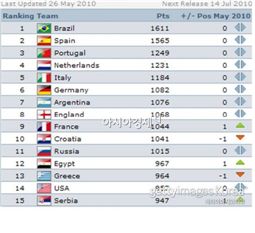 2010년 6월 FIFA에서 국가간 랭킹을 발표했다
