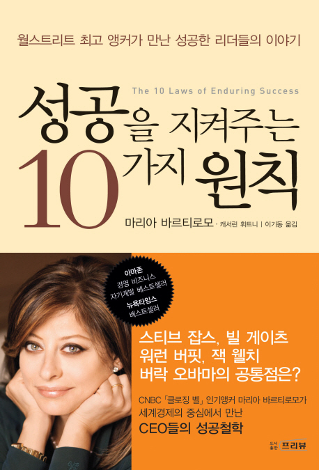 [아시아경제 강승훈 기자] '성공을 지켜주는 10가지 원칙'마리아 바르티로모 지음/ 이기동 옮김/ 프리뷰 펴냄/1만2500원'성공을 지켜주는 10가지 원칙'은 월스트리트 최고의 인기 앵커인 마리아 바르티로모가 직접 만난 200여 명의 CEO들의 성공 철학을 담은 책이다.성공한 리더들, 다시 말해 스티브 잡스, 빌 게이츠, 워런 버핏, 잭 웰치, 콘돌리자 라이스, 힐러리 클린턴, 버락 오바마, 오프라 윈프리 같은 인물들의 공통점은 무엇일까? 이들은 비즈니스 세계에서뿐만 아니라 인류의 미래에 대해, 삶이란 무엇인가에 대해, 그리고 진정한 성공의 의미에 대해 영감에 넘치는 진지한 생각과 지혜로움을 보여줬다.삶에 대해 이들이 보여준 자세와 경영 철학을 통해 얻어낸 결론이 바로 진정한 성공, 한번 왔다 가는 게 아니라 지속되는 성공의 10가지 원칙이다. 저자는 이렇게 자문한다.“만약 내일 아침 눈을 떴을 때 세상 사람들이 나를 성공한 사람이라고 생각하게 만드는 여러 외적인 요소들이 모두 사라지고 없다면 어떻게 할 것인가? 그런데도 불구하고 거울에 비친 내 자신의 모습을 보며 ‘마리아, 너 성공한 거 맞지?’라고 말할 수 있을까?” 그렇다. 성공의 진정한 의미는 돈이 아니라 좋아하는 일, 보람 있는 일을 하는 데 있다. 그리고 그런 보람과 만족은 돈으로 살 수 있는 게 아니다. 이 책은 늦었지만 우리가 이런 삶의 의미, 진정한 성공의 의미를 다시 생각해 보는 데 하나의 단초 역할을 해준다. 저자가 추출해낸 진정한 성공의 10가지 요소들을 구체적으로 따져 나가다 보면 한 가지 분명한 사실이 떠오른다. 그것은 바로 이들 요소 가운데 어느 것 하나도 외부 상황에 좌우되는 것이 없다는 사실이다. 진정한 성공은 우리 안에서 만들어진다. 다시 말해 좋은 시절이건 힘든 시절이건 관계없이 누구나 성공할 수 있으며, 그 성공을 지속시키는 것이 가능하다는 말이다.이는 자기 인생은 자기 자신이 책임져야 한다는 원칙이기도 하다. 그렇지 않으면 다른 누군가가 끼어들어서 그 책임을 대신 진다.잭 웰치는 “자기 운명은 자기가 지배하라. 그렇지 않으면 남이 지배한다”고 입버릇처럼 말한다. 이 책에서 소개하는 진정한 성공의 10가지 요소들은 앞으로 경제 상황이 어떻게 변하든 우리로 하여금 자기 삶의 주인이 되도록 도와 줄 덕목들이라고 저자는 말한다. 진정한 성공을 추구하는 기업인, 좌절의 깊은 심연에 빠져 본 기업인들, 재기의 끈을 재기의 끈을 찾아 노심초사중인 기업인들에게 이 책이 밝은 길잡이가 될 것으로 생각한다. 많은 종업원과 그 가족들의 생계를 책임진 CEO는 물론이고, 사회에 첫발을 내디딜 준비로 땀 흘리는 젊은이들, 그리고 성공과 행복의 사다리를 한 단계씩 성실하게 올라가는 모든 사람들에게 읽어 보기를 권하는 이유가 바로 여기에 있다.강승훈 기자 tarophine@<ⓒ아시아경제 & 스투닷컴(stoo.com)이 만드는 온오프라인 연예뉴스>