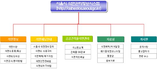 [아시아경제 문소정 기자] 서울시는 '석면관리정보시스템' 을 구축해 오픈했다고 24일 밝혔다.석면관리정보시스템에는 석면에 대한 다양한 정보와 서울시 석면 정책·제도, 석면사용규제내용, 석면해체시 제거지침과 앞으로 새롭게 입법·시행되는 석면안전관리법 및 석면피해구제법에 대한 소개 등도 함께 제공된다.