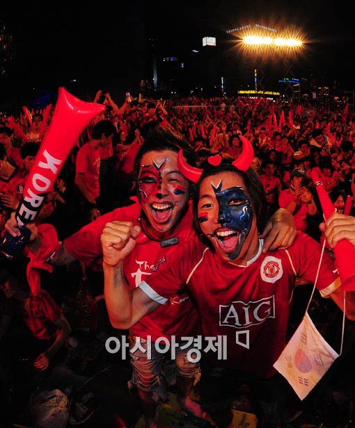 [아시아경제 윤동주 기자] 2010 남아공 월드컵 대한민국 축구 국가대표팀과 우루과이의 16강전을 앞두고 26일 밤 서울광장에 모인 시민들이 열띤 응원을 하고 있다.윤동주 기자 doso7@<ⓒ세계를 보는 창 경제를 보는 눈, 아시아경제(www.asiae.co.kr) 무단전재 배포금지>