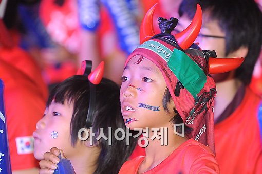 [아시아경제 이기범 기자]2010 남아공 월드컵 한국 대 우루과이 전이 열리는 26일 오후 서울 영동대로에 응원을 나온 한 어린아이가 응원 준비를 하고 있다.이기범 기자 metro83@asiae.co.kr<ⓒ아시아경제 & 스투닷컴(stoo.com)이 만드는 온오프라인 연예뉴스>