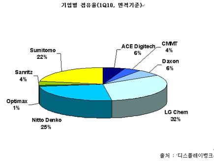 [아시아경제 김혜원 기자] LG화학이 대형 TFT-LCD용 편광판 시장에서 6분기 연속 점유율 1위를 이어갔다.28일 디스플레이뱅크가 발표한 '편광판 및 편광판 부재 필름 산업 동향'에 따르면 지난 1ㆍ4분기 대형 TFT-LCD 패널 핵심 부품인 편광판 시장에서 LG화학은 점유율 32%로 1위를 차지했다. 이어 니토덴코(25.2%)와 스미토모화학(24%) 등 순이었다.특히 LG화학은 모니터 및 TV용 편광판 시장에서 각각 1위를 기록하면서 2위와의 격차를 확대한 것으로 나타났다. 하반기 점유율 확대도 점쳐진다.디스플레이뱅크 측은 "LG화학은 거의 모든 패널 회사에 TV용 편광판을 공급하고 있다"면서 "최근 수요가 급증하고 있는 LED TV용 편광판을 니토덴코와 LG화학만 공급하고 있어 영향력은 더욱 커질 것"이라고 내다봤다. LG화학은 하반기 2300mm 초광폭 라인 가동을 시작할 예정이다.1분기 편광판 시장은 LCD TV 수요 증가와 편광판 공급 불균형에 의한 가격 보합세를 보였다. 시장은 전 분기 대비 1% 증가한 21억달러 규모, 면적 베이스로는 7242만㎡를 기록했다.허은영 디스플레이뱅크 책임연구원은 "지난 2008년 하반기 이후 침체됐던 편광판 업계가 다시 활기를 띠기 시작했다"며 "TFT-LCD 패널 수요 증가로 업체들이 동결했던 투자를 재개하고 있고 가격도 지난해 3분기 이후 보합세를 유지하고 있기 때문"이라고 설명했다.허 연구원은 또 "LEDㆍLCD TV의 성공적인 시장 진입으로 프리미엄 TV 수요도 늘고 있어 올해 편광판 기업의 증익이 기대된다"고 덧붙였다.김혜원 기자 kimhye@<ⓒ세계를 보는 창 경제를 보는 눈, 아시아경제(www.asiae.co.kr) 무단전재 배포금지>