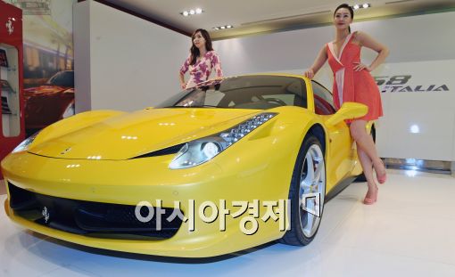 [아시아경제 이재문 기자]수퍼카 브랜드 페라리가 29일 서울 신사동매장에서 '페라리 458 이탈리아'를 선보이고 있다. '페라리 458 이탈리아'는 F1의 황제 미하엘 슈마허가 제작에 직접 참여, 8기통 4.5리터의 미드리어 엔진을 탑재했다. 최고출력 570마력, 최대토크 55.1kg.m, 제로백 3.4를 자랑한다. 가격은 3억 7천 2백만원.이재문 기자 moon@<ⓒ세계를 보는 창 경제를 보는 눈, 아시아경제(www.asiae.co.kr) 무단전재 배포금지>
