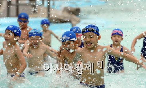 [아시아경제 이재문 기자]서초구가 29일 서울 양재천 영동1교 옆에 야외수영장을 개장했다. 이날 수영장을 찾은 아이들이 물놀이를 하며 즐거운 시간을 보내고 있다. 양재천 야외수영장은 폭 13.2m, 길이 50m에 이르는 국제규격 성인풀과 직경 10m의 원형 유아풀 등 2개의 수영장을 비롯해 선베드, 지압보드, 샤워실, 탈의실, 음수대 등 다양한 편의시설을 갖췄다.이재문 기자 moon@<ⓒ세계를 보는 창 경제를 보는 눈, 아시아경제(www.asiae.co.kr) 무단전재 배포금지>
