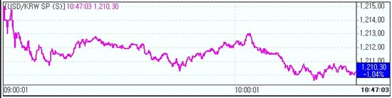[아시아경제 정선영 기자]환율이 1210원선을 뚫고 내려갔다. 오전중 증시가 오르고 유로화 역시 반등하면서 환율 하락을 이끌었다. 호주 고용지표가 예상보다 큰 폭 증가하면서 시장에 안도감을 불어넣은 점이 톡톡히 한 몫했다. 외국인도 코스피에서 7거래일만에 순매수로 돌아서 환율을 밀어내렸다. 코스피지수가 1700선을 다시 바라보며 상승한 점도 환율을 눌렀다.8일 오전 10시37분 현재 원달러 환율은 전일대비 12.7원 내린 1210.30원에 거래되고 있다. 한 시중은행 외환딜러는 "증시와 유로가 오르면서 환율이 1210원을 뚫고 내려갔다"며 "호주 고용지표가 개선되면서 위험 회피 심리가 누그러져 역외 매도가 나왔다"고 설명했다. 또 다른 외환딜러는 "호주 고용지표가 나오면서 1210원에서 약 1원 정도 더 빠졌다"며 "1210원대에서는 결제수요도 들어오고 다시 역외비드도 조금씩 나오면서 환율이 지지되고 있다"고 말했다. 정선영 기자 sigumi@<ⓒ세계를 보는 창 경제를 보는 눈, 아시아경제(www.asiae.co.kr) 무단전재 배포금지>정선영 기자 sigumi@<ⓒ아시아 대표 석간 '아시아경제' (www.newsva.co.kr) 무단전재 배포금지>