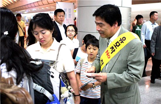 [아시아경제 임혜선 기자]한국승강기안전관리원(원장 김남덕)은 15일 에스컬레이터 안전캠페인을 펼쳤다.서울 등 대도시에서 진행된 이날 캠페인에는 전국 21개의 승관원 소속기관과 녹색어머니회 등 시민단체 그리고 7개 지하철 운영기관 등 1000여명이 참여했다. 참석자들은 지하철역사, 다중이용시설, 초등학교 등에서 에스컬레이터 이용자를 대상으로 안전사고 예방법이 담긴 홍보용 부채와 전단지를 배포했다.김남덕 승관원장은 "에스컬레이터 안전사고는 이용자가 안전손잡이를 잡고 노란안전선 안에만 탑승해도 상당부분의 사고를 예방할 수 있다"면서 에스컬레이터 이용자들에게 주의를 당부했다. 임혜선 기자 lhsro@<ⓒ세계를 보는 창 경제를 보는 눈, 아시아경제(www.asiae.co.kr) 무단전재 배포금지>
