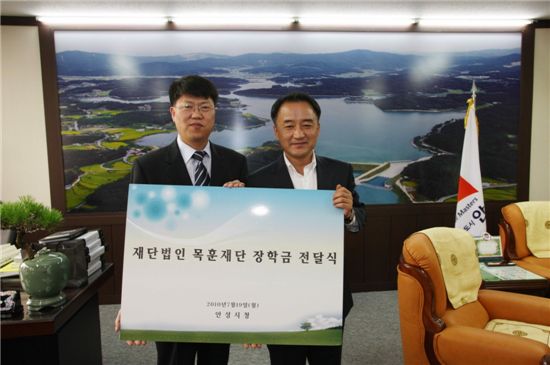 [아시아경제 김장중 기자]기업들의 장학사업이 줄을 잇는다.재단법인 목훈재단(대표 손동창)의 출연회사 (주)퍼시스는 19일 경기 안성시를 방문, 황은성 시장에게 1400만원 상당의 장학증서를 전달했다고 밝혔다.시는 이번에 받은 장학증서를 토대로 지역내 저소득층 자녀 가운데 모범적이고 성적이 우수한 학생 10명을 선발, 1년간 수업료와 학교운영지원금 등을 지원한다.목훈재단은 (주)퍼시스, (주)일룸, (주)시디즈 3개 업체가 지난 2002년 12월 설립한 공익재단으로 학술연구비 및 장학금 지원사업 등을 펼치고 있다. 장학금 지원은 올해 8년째다.황은성 시장은 "기업들의 사랑을 나눠 어려운 환경 속에서도 자신의 꿈을 펼칠 수 있도록 꼭 필요한 학생을 선발, 훈훈한 정을 나누겠다"고 말했다.김장중 기자 kjj@<ⓒ세계를 보는 창 경제를 보는 눈, 아시아경제(www.asiae.co.kr) 무단전재 배포금지>