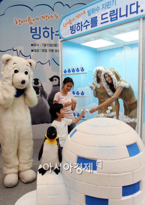 [아시아경제 이재문 기자]롯데백화점이 본격적인 무더위 시즌을 맞아 19일 오전 서울 소공동 본점에서 미녀도우미가 직접 자판기에 들어가 고객들에게 빙하수를 나눠주는 이벤트를 펼치고 있다. 이재문 기자 moon@<ⓒ세계를 보는 창 경제를 보는 눈, 아시아경제(www.asiae.co.kr) 무단전재 배포금지>