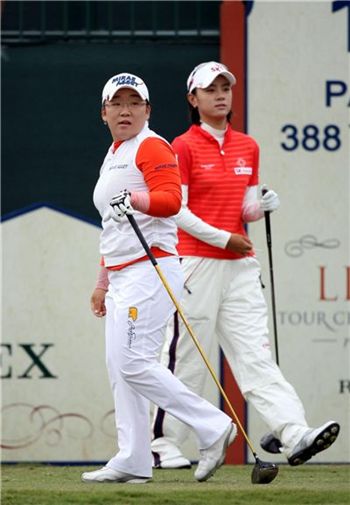 에비앙마스터스에서 한국의 첫 우승컵을 노리는 신지애(왼쪽)와 최나연. 사진=JNA제공