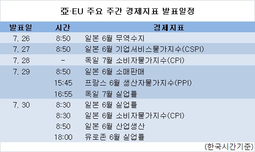 亞·EU 주요 주간 경제지표 발표일정