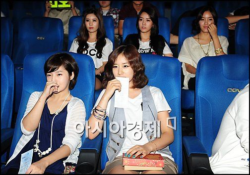 [아시아경제 박종규 기자] 영화 ‘고사 두 번째 이야기: 교생실습’(이하 ‘고사2’)에 출연하는 박지연을 위해 티아라 멤버들이 특별한 이벤트를 마련했다. 팬들과 함께 영화 관람에 나선 것.티아라 지연과 보람, 효민, 소연, 큐리 등은 26일 오후 6시 서울 강남구 압구정CGV에서 열린 영화 ‘고사2’ 특별 시사회 무대인사에 나섰다. 이날 시사회는 ‘고사2’의 공식 카페 회원 150여명이 참가한 가운데 진행됐다.지연은 ‘고사2’에서 조용하고 차분한 학생 세희 역을 맡아 열연했다. 첫 영화 출연임에도 불구하고 안정적인 연기가 빛났다. KBS2 드라마 ‘공부의 신’에서 성공적으로 배우 신고식을 마친 지연은 이번에도 학생으로 등장했다.팬들의 열광 속에 모습을 드러낸 티아라는 소감을 한마디씩 밝혔다. 상기된 표정으로 마이크를 잡은 지연은 “시사회에 와 주셔서 감사하다. 재밌게 봐주셨으면 좋겠다”고 말했고, 보람도 “지연이가 영화에 출연해서 기분이 좋다”며 막내 지연에게 힘을 실어줬다.KBS2 예능 프로그램 ‘청춘불패’에 출연하고 있는 효민은 “지연이가 처음 영화에 데뷔한다고 해서 왔다. 팬 여러분들이 재밌게 봤으면 좋겠다”고 말한 데 이어 큐리는 “팬 여러분을 여기서 만나니 더 반갑다. 지연이가 스크린에 데뷔한다고 하니까 저희도 같은 멤버로서 떨리는 마음으로 지켜보겠다”라며 미소지었다. 소연도 “영화 '고사2' 입소문 많이 내달라”며 성원에 동참했다.티아라 멤버들의 무작위 추첨으로 뽑힌 팬들은 각각 멤버들의 옆자리에 앉아 영화를 감상했다. 티아라는 팬들에게 친필 사인 시디를 선물하기도 했다.‘고사2’의 홍보사 관계자는 “영화 개봉 직전 시사회라 더욱 관심이 집중됐다. 카페 회원 대부분이 티아라의 팬들이라 그런지 팬 미팅 분위기가 났다”며 “다른 출연자들에게 쏠린 관심보다 더 뜨거웠다”고 말했다.한편 '고사2'는 여름방학을 맞아 생활관에서 특별수업을 받던 중 의문의 살인이 시작되면서 모두의 목숨을 건 피의 고사를 치르는 우성고 모범생들의 생존게임을 그린다. 오는 28일 개봉. 박종규 기자 glory@사진 박성기 기자 musictok@ <ⓒ아시아경제 & 스투닷컴(stoo.com)이 만드는 온오프라인 연예뉴스>