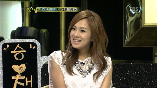 [아시아경제 이종길 기자]신곡 ‘봐봐봐’로 컴백한 가수 채연이 “이승기에게 마음 설렌 적이 있다”고 깜짝 고백했다. 채연은 27일 방송된 SBS '강심장'에 출연해 MC 이승기에 대한 숨겨둔 마음을 공개해 출연진들을 놀라게 했다. 채연은 “언젠가 이 자리에 나와 꼭 확인하고 싶은 게 있었다”고 입을 뗀 뒤 “이승기에게 할 말이 있다”고 말했다. 그는 “과거 SBS ‘엑스맨’, ‘연애편지’ 등의 프로그램에서 이승기와 커플로 연결된 적이 많았다”며 “당시 방송을 떠나 실제로 마음이 셀렌 적이 있었다”고 깜짝 공개했다. 채연과 제작진은 커플로 함께했던 영상을 준비해 이승기를 당황시켰다. 이어 집요한 질문 공세로 이승기로부터 “채연을 마음에 둔 적이 있었다”는 말을 끌어냈다. 하지만 이승기는 마음을 분명히 했다. 그는 “국적 등 어떤 것도 사랑을 막을 수 없지만 나이는 그럴 수 있다”며 채연을 낙심케 했다. 한편 이날 방송에는 채연 외에도 빅뱅 태양, 승리, 윤시윤, 송은이, 간미연, 황보, 하주희, 티아라 지연, 엠블랙 미르, 김진, 남보라 등이 출연해 자리를 빛냈다.