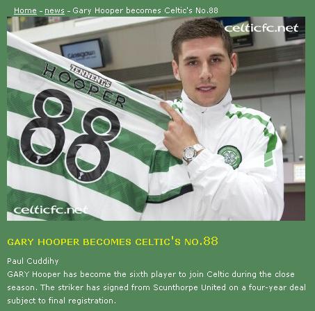 개리 후퍼의 입단 소식을 전하는 셀틱 구단 홈페이지[사진 출처=셀틱 홈페이지]