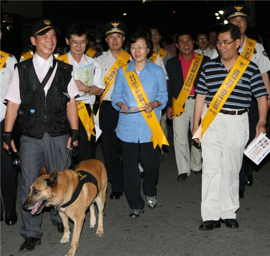 [아시아경제 박종일 기자]신연희 강남구청장이 28일 오후 수서동 치안취약지역 합동 순찰에 나서 관할지역 경찰,순찰견과 거리의 치안상태를 점검하고 있다.박종일 기자 dream@<ⓒ세계를 보는 창 경제를 보는 눈, 아시아경제(www.asiae.co.kr) 무단전재 배포금지>