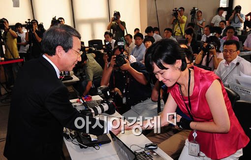 [아시아경제 윤동주 기자] 정운찬 국무총리가 29일 서울 세종로 정부종합청사에서 사의를 표명하는 담화문 발표를 마친후 기자들과 마지막 인사를 하고 있다.윤동주 기자 doso7@<ⓒ세계를 보는 창 경제를 보는 눈, 아시아경제(www.asiae.co.kr) 무단전재 배포금지>