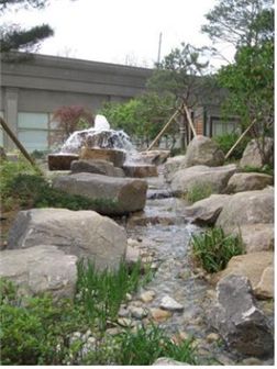 ◇식사지구 중앙광장 앞 탁트인 4블록= 일산자이 위시티 4블록은 중앙광장을 바로 앞에둬 분양률 100%를 기록할 정도로 인기가 높다. 다른 단지보다도 구릉면이 많아 많은 동의 지하주차장 출입구가 지상쪽에 배치돼 있는 모습을 볼 수 있다. 1·2블록의 경우 단지조경이 곳곳에 숨어있지만 4블록은 단지 중앙에 특화된 조경을 모두 배치, 탁 트인 조망이 특징이다. 중앙부는 크게 3개의 공간으로 나뉘어 조성됐다. 단지 가장 오른쪽에는 '윈디프라자'라는 광장이 자리한다. 공간 높낮이에 변화를 줘 동적이면서도 활동적인 느낌을 주도록 꾸며졌다. '윈디프라자'에서 내려와 단지 중앙을 따라 걷다보면 생태계류와 연못, 그리고 전통문양의 정자가 자리하고 있는 '리드미컬 필드' 광장이 나온다. 생태연못과 정자가 위치하고 있어 한국적인 분위기가 물씬 풍긴다. 옆쪽에는 예술장식품이 어우러진 수경시설이 배치돼 유럽풍 정원 같은 느낌도 든다.단지의 가장 왼쪽으로 들어가보면 '레인보우 게이트'라는 이름이 지어진 게이트 조형물이 위치한 '레인보우 힐스'가 있다. 개선문 같은 조형물인 레인보우 게이트는 바닥분수와 안개분수가 조성돼 있다.4블록에는 이 단지만의 특별한 조형물이 곳곳에 설치돼 있다. 자이(xi)의 'x'자의 모습을 연상케 하는 파고라로, 입주민들이 앉아서 쉴 수도 있다.◆'일산자이' 2블록에 조성된 대표적 조경 '진경산수'.
