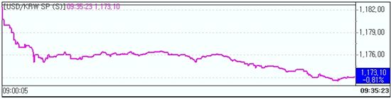 [아시아경제 정선영 기자]원·달러 환율이 한달여만에 최저 수준으로 하락하고 있다. 환율은 장초반 이월롱스탑이 유입되며 1170원대로 레벨을 낮췄다. 2일 서울외환시장에서 원달러 환율은 전일대비 0.2원 내린 1182.5원으로 개장했으나 개장 직후부터 1174.3원까지 뚝 떨어지며 저점을 낮췄다. 외환시장에서는 7월 무역수지 흑자 소식이 호재로 작용하면서 환율 하락의 빌미로 작용했다. 주말 지식경제부가 발표한 7월 수출입동향에 따르면 무역수지는 56억7000만달러를 기록하며 6개월 연속 무역 흑자행진을 나타냈다. 지난달까지 누적된 무역흑자만 따져도 233억달러로, 올해 초 정부가 연간 목표로 제시한 230억달러를 벌써 넘어섰다. 한 시중은행 외환딜러는 "무역수지 흑자 소식에 외환당국 스무딩오퍼레이션 물량이 보이지 않으면서 아래쪽으로 밀렸다"며 "역외셀은 많지 않은 가운데 1170원대 지지여부를 좀 더 지켜봐야 할 듯하다"고 말했다. 또 다른 외환딜러는 "싱가폴 달러, 인도네시아. 말레이시아 링기트화 등 아시아통화 대부분이 전저점 부근으로 빠지고 있다"며 "원달러도 이에 따른 영향을 받고 있는 가운데 추가 하락 가능성을 배제하기는 어렵지만 장초반 10원 가까이 하락한 만큼 하단에서 결제수요, 당국 개입 가능성이 있는 만큼 저점을 더 낮추기도 만만치 않아 보인다"고 내다봤다. 이날 오전 9시32분 현재 코스피지수는 19.52포인트 오른 1778.58에 거래되고 있다. 외국인은 코스피에서 292억원 순매수로 9거래일째 사자세를 연출하고 있다. 같은 시각 8월 만기 달러선물은 10.00원 내린 1173.5원에 거래중이다. 등록외국인이 2756계약 순매도한 반면 개인은 2308계약 순매수하고 있다. 오전 9시34분 현재 달러엔은 86.67엔으로 오르고 있고 원엔 재정환율은 100엔당 1364.0원으로 내리고 있다. 유로달러는 1.3076달러로 오르고 있다. 정선영 기자 sigumi@<ⓒ세계를 보는 창 경제를 보는 눈, 아시아경제(www.asiae.co.kr) 무단전재 배포금지>정선영 기자 sigumi@<ⓒ아시아 대표 석간 '아시아경제' (www.newsva.co.kr) 무단전재 배포금지>