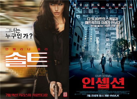 [아시아경제 강승훈 기자] 영화 '솔트'와 '인셉션'이 접전을 벌이며 기간별 박스 오피스 1,2위를 달리고 있다.영화진흥위원회 영화관입장권통합전산망의 집계 결과에 따르면 지난 7월 31일부터 1일까지 영화 '솔트'는 52만 3058명의 관객을 동원했다. 영화 '인셉션'은 49만 6464명의 관객을 동원해 두 작품 모두 박빙의 승부수를 띄우고 있다.최근 기간별 박스오피스에서는 영화 '인셉션'이 개봉 12일만에 250만 관객을 돌파했다. 이보다 다소 늦게 개봉한 영화 '솔트'는 1일까지 누적관객수 92만 6943명을 기록해, 2일 100만 관객 돌파가 확실시된다.특히, 영화 '솔트'의 인기 비결은 안젤리나 졸리의 한국 방문이 컸던 것으로 분석되고 있다.안젤리나 졸리는 지난 달 27-28일 양일간 한국을 방문해 영화 홍보에 참여했다. 그녀는 톱스타임에도 불구하고 제작사 측에 까다로운 조건을 제시하지 않았다. 또한, 관객들에게도 매너있는 모습을 보이며 한국팬들에게 좋은 인상을 심어줬다. 이런 부분들이 호재로 작용하면서 영화 '솔트'에 대한 관객들의 관심이 커지고 있다.영화 관계자는 "대개 블록버스터급 외화들이 개봉관도 많이 확보해서 관객들이 많다. 하지만 우리 영화 '이끼'와 '고사2'도 선전하고 있기 때문에 올 여름 '솔트''인셉션''이끼''고사2' 4파전도 비교해보면 재미있을 것"이라고 말했다.강승훈 기자 tarophine@<ⓒ아시아경제 & 스투닷컴(stoo.com)이 만드는 온오프라인 연예뉴스>