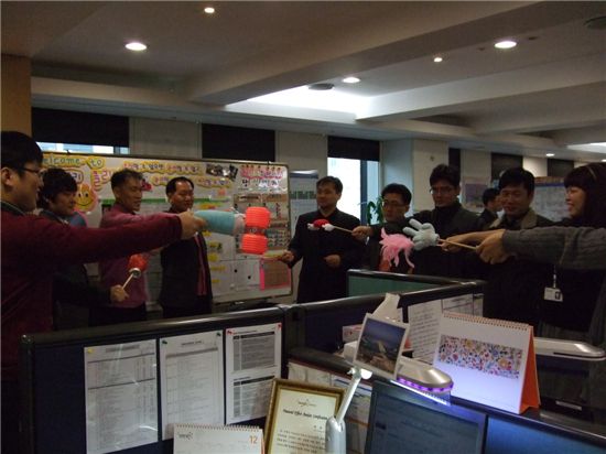 [아시아경제 박수익 기자] #웅진그룹 계열 화섬업체 웅진케미칼에는 각 부서마다 길이가 약3m에 이르는 대형 칠판이 있다. 직원들은 매일 아침 '행가래(幸家來)'란 이름의 이 칠판을 통해 업무공유는 물론 팀별 자랑거리 찾기를 일상화하고 있다. 지난해 9월 12개로 시작된 웅진케미칼의 '행가래'는 현재 70개로 확대됐다.웅진케미칼의 남다른 '소통경영'이 관심을 모으고 있다. 지난달 초에는 아예 전 임직원들이 충무로 한 극장에서 모여 '소통'을 주제로 토론까지 벌였다. 박찬구 전략기획본부장의 주재로 진행된 이 행사는 '소통 혁신'이란 주제를 놓고 자유롭게 묻고 답하는 시간을 가진 뒤, 단체로 영화관람을 하는 순서로 진행됐다.웅진케미칼이 '소통'을 중요시하는 배경에는 수 년 간 부침을 겪었던 기업 역사가 자리잡고 있다. 과거 새한으로 지난 2000년부터 2008년까지 워크아웃을 진행한 뒤, 2008년 웅진그룹에 편입되는 과정에서 수년간 '소통'보다는 '생존'이 우선시 됐기 때문이다.실제로 웅진케미칼은 2008년에는 '생존', 2009년에는 '현장'이라는 화두로 혁신활동을 벌여왔다. 하지만 올해는 혁신의 화두를 '문화'로 바꾸고 '신나고 재미있는 일터' 구현에 나서고 있다. 웅진케미칼 관계자는 "임직원들을 대상으로 조사한 결과 현재 회사에서 가장 필요한 항목으로 소통이 선정됐다"며 "이후 외부컨설팅을 받아 전문적이고 구체적인 소통프로젝트를 진행하고 있다"고 설명했다.웅진케미칼은 그룹 차원에서 진행하고 있는 '행가래' 외에도, 서로의 성향을 공유해 원활한 의사소통을 가능하게 하는 'MBTI 보드 운영', 양방향 소통을 위한 'CEO 러브레터 발송' 등 다양한 혁신활동 프로그램을 발굴ㆍ추진하고 있다.회사 관계자는 "향후 경영진ㆍ팀장 등 계층별로 각종 프로그램을 운영하고, 워크숍과 커뮤니티 교육 등을 통해 소통확대를 위해 다양한 활동을 전개할 것"이라고 설명했다.박수익 기자 sipark@<ⓒ세계를 보는 창 경제를 보는 눈, 아시아경제(www.asiae.co.kr) 무단전재 배포금지>