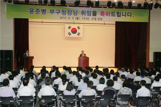 [아시아경제 박종일 기자]윤준병 관악구 부구청장(49)이 2일 오전 10시 관악구청 8층대강당에서 취임을 가졌다.윤 부구청장은 이전 가족보건기획관으로서 여행(女幸) 프로젝트, 꿈나무 프로젝트, 서울형 어린이집 운영, 아토피 전문클리닉 개원, 치매통합관리서비스 등 여성·가족·보건과 관련된 정책을 적극 추진했다.윤 부구청장은 취임식에서 “그동안 경험하고 겪었던 다양한 행정경험을 바탕으로 관악구가 한걸음 더 발전해 나갈 수 있는 발판을 마련하고 싶다”며 “앞으로 유종필 관악구청장과 함께 ‘사람중심 관악특별구’를 만들어 가는데 최선의 노력을 다해나갈 것이다.”라고 말했다. ◆약력 ▲ 전주고 졸업 ▲서울대학교 독어독문학과,서울대학교 행정대학원 행정학과 석사 ▲미 오레곤대학교 행정학과 석사 ▲서울시립대학교 법학과 박사◆주요 경력 ▲제26회 행정고시 ▲교통관리실 교통기획과장 ▲산업국 산업지원과장 ▲교통기획관 ▲여성가족정책관 가족보건기획관 ▲서북병원장, 어린이병원장 겸임박종일 기자 dream@<ⓒ세계를 보는 창 경제를 보는 눈, 아시아경제(www.asiae.co.kr) 무단전재 배포금지>