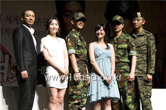 Press conference for military musical "Voyage of Life" [tentative title] With the increasing number of celebrity officers serving in the military compared to previous years, the quantity and quality of military-produced contents have been changing. Musical productions in particular have become one of the most representative military contents ever since Kangta and Yang Dong-geun performed in musical "Mine" in 2008. And two years later, the Korean military is producing musical "Voyage of Life" [tentative title] with Lee Jun-ki and Joo Ji-hoon playing the lead roles. If 2008's production 'Mine" was a story about a father and a son, "Voyage of Life" -- produced in celebration of the 60th anniversary of the Korean War -- focuses on the "communication between the war generation and the post-war generation." The story of musical "Voyage of Life" begins on Jangjin Reservoir, an intense and cruel battlefield. After General MacArthur made a successful landing at Incheon in 1950, the United Nations Allied Forces are overpowered by the Chinese military defense and decide to retreat to Port Heungnam. With 14,000 refugees, the United Nations Allied Forces board the ship Meredith, which set a new world record and was registered in 2004 as 'the single boat which saved the most number of lives.'In the musical, Lee Jun-ki plays the Korean military's second lieutenant Hae-gang while Joo Ji-hoon is cast as the North Korean People's Army officer Jung-min. The two sharpen the blade of each of their ideologies. But later, the two weather the ocean of life as they go through extreme circumstances on the Meredith together. Through three men Hae-gang, Jung-min and Davis (played by Kim Da-hyun) who have different ideologies and belong to different societies, the musical "Voyage of Life" plans to "thank the Korean and foreign soldiers who fought during the Korean War while informing teenagers, who don't even know which countries were fighting in the Korean War, that their freedom and happiness came at the price of sacrifice," as the show's producer and lieutenant major Lee Young-no explained. In addition to Lee Jun-ki, Joo Ji-hoon and Kim Da-hyun, "Voyage of Life," which is produced by the Ministry of National Defense and Korea Musical Theatre Association, will feature musical actors including Moon Jong-won and Yoon Gong-joo as well as some 40 military officers. Below is a joint interview from the press conference, held August 2 at Dongsoong Art Center. Musical "Voyage of Life" will run at the National Theater of Korea from August 21 to 29. Q: You are producing another military musical after making one in 2008. What is your intention of producing this musical? Chief Director Yoon Ho-jin (Yoon): This year is the 60th anniversary of the outbreak of the Korean War. I just wanted to show the many people who had helped us over the years, that the Republic of Korea which was a land in ruins, has grown this much.Lieutenant Major Lee Young-no: Last year, I saw a photo exhibition at Cheonggye Square by Doctor Ahn Jae-cheol and it was about the hard times during the Korean War. I was able to decide on doing this musical production with his help. The battle of the Jangjin Reservoir was one of the most intense, cruelest and the most noteworthy battles. The veteran soldiers of the Korean War are currently passing the age of eighty, on average. We don't know how many of them will be alive by the time we reach the seventieth anniversary. I want to. I want to say thank-you to them while informing teenagers who don't know the war about the spirit of sacrifice. Q: Lee Jun-ki, you are doing your first musical debut in the army. Now that you have done a musical, how do you feel about it? Lee Jun-ki (Lee): I am well aware that "Voyage of Life" has a positive meaning behind it. But I thought a lot about what meaning it should hold for me as I do it. I think it will be a meaningful experience if is about repaying [the veterans], like a tribute performance, and the audience learns how noble their sacrifice is. I have gained a sense of duty [about doing the show]. Q: For Joo Ji-hoon, you starred in "Don Juan" and this is your second musical. You play the role of Jung-min, who is a villain. Joo Ji-hoon (Joo): He is described in the story as a villain, but Jung-min and Hae-gang just have ideological conflict and there is no scene where they hate people. In that respect, my character is someone who has to save humanity elements in the story and show why fellow countrymen have to fight each other. As an actor playing the role, I don't think that my character is a bad guy. I think I am the nicest one. (laugh) Q: Your characters have conflicts in the plot, but how do you feel about each other? Joo: That is the hardest question. (laugh) Lee Jun-ki and I are of the same age and we met for the first time in the military. I thought Lee Jun-ki would have a hard time because he was the last to join the musical. But although he has the lowest rank, he has such a great personality and is so outgoing that he always sets the tone in group surroundings. He gets along well with people around him, unlike his demure image. Lee: I think it would have been great if we had met in comfortable surroundings outside the military. (laugh) And Joo Ji-hoon became a first-class private today. It was consoling that he was a second-class private like me, but this morning he came with his first-class rank. I was very depressed in the morning. But first-class private Joo Ji-hoon has a kind heart. Reporter : Jang Kyung-Jin three@Photographer : Lee Jin-hyuk eleven@Editor : Lynn Kim lynn2878@<ⓒ10Asia All rights reserved>