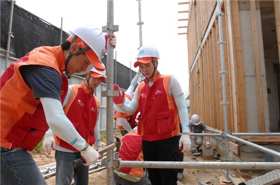 [아시아경제 명진규 기자]SK C&C(대표 김신배 부회장)는 4일 충남 천안시 목천읍 교촌리 '희망의 마을'에서 해비타트 운동인 '사랑의 집짓기' 행사에 참여한다고 밝혔다. SK C&C 임직원 150여명은 총 4회에 걸쳐 목조목조주택 외부작업, 지붕합판 붙이기 등 기초공사부터 마무리 시공까지 공사에 가담하게 된다. 이번 행사는 한국해비타트와 함께 무주택 서민 주거문제 해결을 위해 기획됐다. SK C&C자원봉사자, 입주가정, 후원자, 건축전문가가 공동으로 17평 규모의 2층 4세대를 건축할 예정이다. SK그룹은 지난 2005년 수원시 권선구 곡반정동에서 '해비타트-SK행복마을' 건립 기공식을 가진바 있으며, 2006년 3개동 18세대를 건립하는 등 지속적으로 '해비타트-SK행복마을' 건립사업을 추진하고 있다. 한편, 한국해비타트는 1995년 건설교통부에 비영리 공익법인으로 정식 인가를 받아, 2007년 현재 국내 13개 지역에 지회를 설립하여 무주택 서민을 위해 활동하고 있다.명진규 기자 aeon@<ⓒ세계를 보는 창 경제를 보는 눈, 아시아경제(www.asiae.co.kr) 무단전재 배포금지>