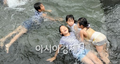 [아시아경제 이재문 기자]연일 무더위가 계속되고 있는 가운데 5일 오후 서울 청계천을 찾은 아이들이 물속에 들어가 더위를 식히고 있다.이재문 기자 moon@<ⓒ세계를 보는 창 경제를 보는 눈, 아시아경제(www.asiae.co.kr) 무단전재 배포금지>