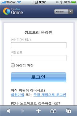 한컴의 '씽크프리 온라인 모바일 사이트'