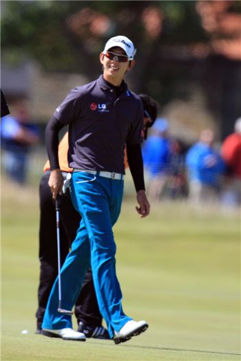 [아시아경제 김현준 골프전문기자]'아이돌스타' 노승열(19ㆍ타이틀리스트ㆍ사진)이 '메이저 돌풍'을 일으키고 있다.양용은(38)의 '메이저 타이틀 방어'와 '골프황제' 타이거 우즈(미국)의 '설욕전'에 초점이 맞춰진 올 시즌 '마지막 메이저' PGA챔피언십(총상금 750만 달러) 2라운드. 노승열은 첫날 잔여 경기 5개 홀에서 3타를 더 줄이는 스퍼트를 앞세워 공동 3위에 오르는 '깜짝 스퍼트'를 완성했다. 매트 쿠차(미국)가 일단 리더보드 상단(8언더파)을 점령한 상황이다.노승열은 14일(한국시간) 미국 위스콘신주 콜러의 휘슬링스트레이츠골프장(파72ㆍ7507야드)에서 속개된 둘째날 경기에서 합계 5언더파 139타를 쳤다. 선두 쿠차와는 불과 3타 차다. 선두권은 쿠차에 이어 닉 와트니(미국)가 2위(7언더파)에서 추격전을 전개하고 있지만 오전 9시30분 현재 대다수 선수들의 경기가 이어지고 있어 아직 순위는 큰 의미가 없다.노승열은 2008년 아시안(APGA)투어 미디어차이나클래식에 이어 지난 3월 유러피언(EPGA)투어 메이뱅크말레이시아오픈에서 우승해 세계무대로 도약하고 있는 '한국의 차세대 기대주'. 이번 대회 역시 대회조직위원회의 특별초청을 받아 '빅 리그'에서도 잠재력을 인정받고 있다. 노승열은 이날 5번홀(파5)에서 출발해 6번홀(파4)까지 연속버디, 8번홀(파4) 버디로 1라운드 종료시점에서 공동 2위(4언더파)였다. 노승열은 이어진 2라운드에서는 버디 4개와 보기 3개를 묶어 1언더파 71타로 경기를 마쳤다. '차세대 골프황제'로 꼽히고 있는 로리 매킬로이(북아일랜드)가 공동 3위에 합류해 이미 현지에서는 '영건들의 우승경쟁'도 화제가 되고 있는 양상이다.양용은이 이븐파, 우즈가 1언더파로 두 선수는 여전히 '제자리걸음'을 걷고 있다. 우즈의 '세계랭킹 1위'자리를 호시탐탐 노리고 있는 필 미켈슨(미국)이 2라운드에서 3언더파를 치는 호조를 보여 공동 16위(2언더파 142타)로 순위를 끌어올려 우즈로서는 위기감이 조성되고 있다. 미켈슨은 우승은 물론 공동 4위 이상의 성적만 내도 우즈의 성적에 따라 '넘버 1'에 등극할 수 있는 호기다.'한국군단'은 김경태(24)가 이븐파, 재미교포 앤서니 김(24ㆍ한국명 김하진)과 케빈 나(27ㆍ한국명 나상욱)가 1오버파에서 '총력전'을 펼치고 있다. '컷 오프' 기준선이 2오버파로 예상되는 가운데 최경주(40)는 3오버파에 머물러 3라운드 진출이 시급하다. 위창수(38)는 5오버파149타로 경기를 마쳐 일찌감치 코스를 떠나게 됐다.김현준 골프전문기자 golfkim@<ⓒ세계를 보는 창 경제를 보는 눈, 아시아경제(www.asiae.co.kr) 무단전재 배포금지>