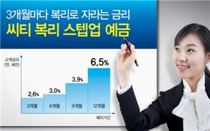한국씨티은행은 15일 3개월마다 이자가 상승하는 복리 정기예금 '복리 스텝업(Step-up) 예금'을 출시했다. 이 예금은 가입 시점에서 예치 기간인 12개월을 3개월씩 4개 기간으로 나눠 각 기간별로 금리를 모두 확정하는 것이 특징이다. 8월 15일 현재 각 기간 금리는 3개월에 연 2.6%, 6개월에 연 3.0%, 9개월에 연 3.9%, 12개월에 연 6.5%다. 각 기간별 이자는 매 3개월마다 원금에 가산돼 복리 효과를 낸다. 중도해지하는 경우에도 해당 기간에 대해 정기예금 수준의 이자를 받을 수 있으므로, 금리인상에 대한 기대로 정기예금가입을 미루고 있거나 여유자금을 언제 쓸지 몰라 예금 가입을 주저하는 사람에게 제격이다. 1년 만기까지 유지하면 연평균 약 4.0%의 이자를 제공하며, 가입금액은 100만원 이상이다. 전국 씨티은행 지점에서 가입 가능하다. 이지은 기자 leezn@<ⓒ세계를 보는 창 경제를 보는 눈, 아시아경제(www.asiae.co.kr) 무단전재 배포금지>