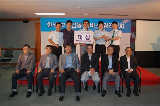 [아시아경제 오현길 기자]한샘(대표 최양하)은 지난 14일 오전 창립 40주년을 기념해 서울 방배동 사옥에서 '고객감동 서비스 경진대회'를 실시했다고 16일 밝혔다. 회사 측은 이날 대상에 AS팀 강남센터 사원들을 선정, 200만원의 포상과 트로피를 증정했다고 밝혔다.이들은 대리점에서 접수된 야간 긴급 AS를 고객의 오해였음에도 불구하고 잘 조치해 고객을 감동하게 해 지속적으로 연고소개까지 받은 실제 사례를 시연해 좋은 평가를 받았다고 설명했다.아울러 금상 1팀, 은상 2팀, 동상 4팀에는 각각 100만원, 70만원, 50만원의 상금을 수여했다. 결선에 입선한 나머지 모든 팀에도 각 30만원의 상금을 지급했다.최양하 회장은 "고객감동 서비스의 실례를 보면서 일선근무자들의 노고를 다시 한 번 느낄 수 있었다"며 "경진대회를 주기적으로 실시해 영업, 시공, AS일선에서의 고객감동활동을 전임직원이 공유함으로써 고객감동의 수준을 더욱 높여가겠다"고 말했다.오현길 기자 ohk0414@<ⓒ세계를 보는 창 경제를 보는 눈, 아시아경제(www.asiae.co.kr) 무단전재 배포금지>