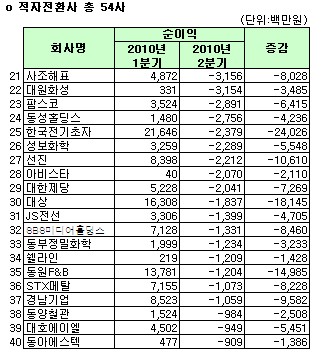[2010상반기실적]2Q 적자전환 상위 21~40위(1Q 대비)