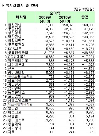 [2010상반기실적]상반기 적자전환사 (전년 대비)