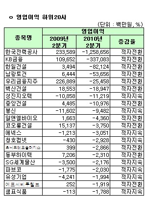 [2010상반기실적]2Q 영업이익 하위 20개사 (전년 대비)